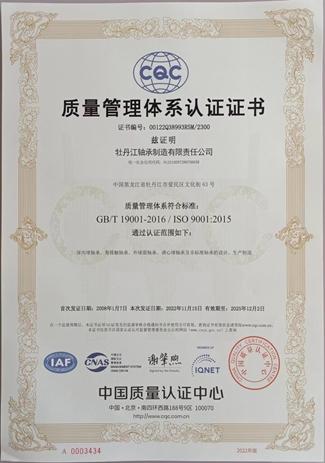 質(zhì)量認(rèn)證書